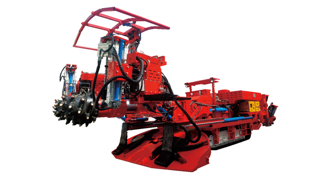 EBZ200M-4掘锚机是针对煤巷掘进工作面断面(宽度4.5m-6m, 高度3.5m-4.5m) 而设计的一款新型产品,本设备实现了巷道掘进与锚索锚杆支护的一体化。掘进机能实现连续切割、装载、运输作业;锚杆机可钻锚杆孔,搅拌树脂药卷和安装锚索锚杆,并且对锚杆螺母进行拧紧,达到初始预紧力要求。